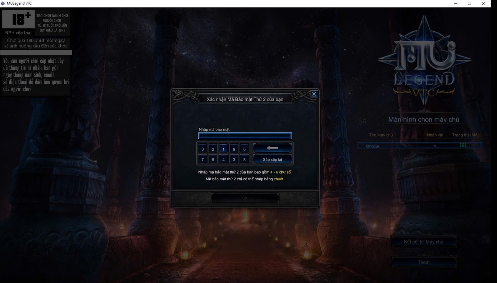 MU Legend PC tích hợp lớp bảo mật thứ hai, tăng cường an toàn tài khoản người chơi.