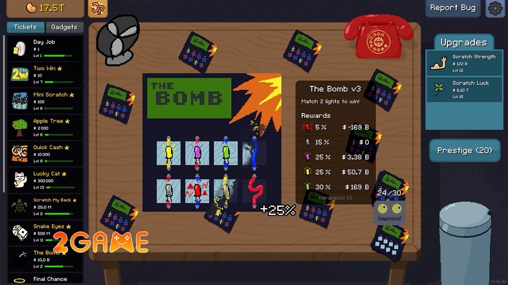 Sự kết hợp giữa yếu tố thủ công đầy cảm xúc và cơ chế tự động hóa thông minh tạo nên một nhịp độ chơi game cực kỳ dễ chịu nhưng không kém phần lôi cuốn. Bạn sẽ liên tục được trải nghiệm cảm giác thăng hoa khi mở khóa các nâng cấp giúp tăng tỷ lệ thắng, cường hóa tiền thưởng hay khám phá những biến thể thẻ cào mới với luật chơi độc đáo, khiến mỗi giây phút trong game đều tràn đầy sự tươi mới.