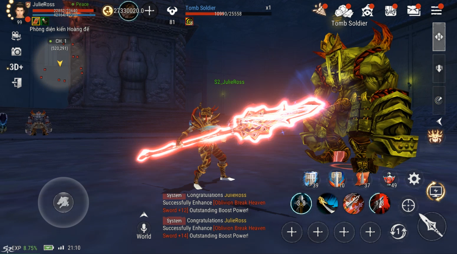 Điểm nhấn quan trọng nhất của bản cập nhật lần này chính là bản đồ Tần Lăng, nơi các nhân vật cấp 100 sẽ bước vào những trận chiến PvP và PvE quy mô lớn chưa từng có. Lần đầu tiên trong lịch sử Silkroad, cơ chế liên server được triển khai, phá bỏ mọi giới hạn giữa các máy chủ, mở ra một chiến trường nơi hàng nghìn game thủ cùng tranh tài. Vùng đất huyền thoại mới mở ra, người chơi sẽ khám phá một thế giới đầy thử thách với những quái vật cổ đại, các boss khủng và kho báu quý hiếm, đòi hỏi sự phối hợp và chiến thuật hợp lý.
