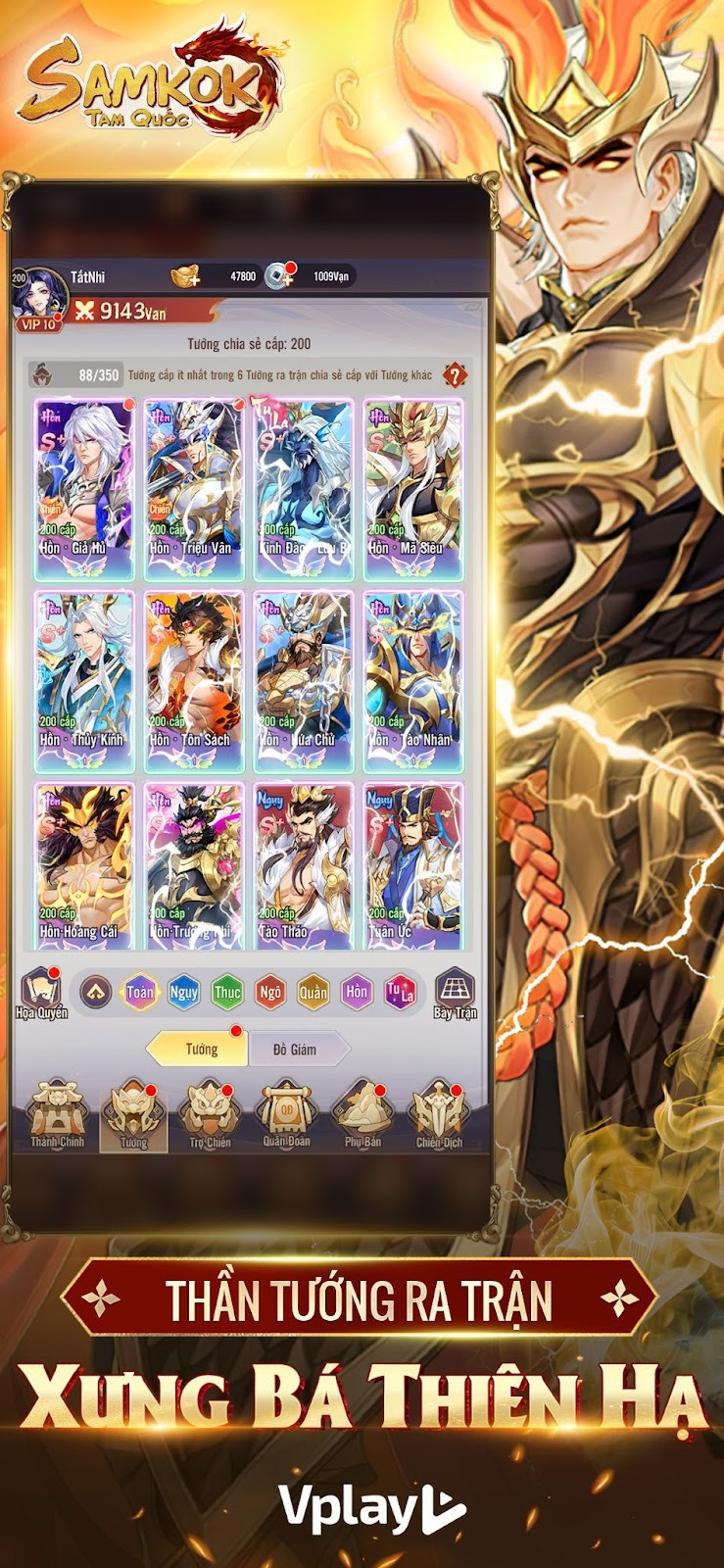 Điểm nổi bật của Samkok Tam Quốc nằm ở hệ thống tướng được thiết kế đa dạng, mỗi nhân vật đều sở hữu bộ kỹ năng và vai trò riêng trong giao tranh. Thay vì chỉ phụ thuộc vào chỉ số, game đề cao khả năng kết hợp đội hình, lựa chọn tướng phù hợp và tận dụng hiệu ứng kỹ năng để tạo ra lợi thế trên chiến trường. Điều này mang lại chiều sâu chiến thuật và mở ra nhiều phong cách chơi khác nhau cho game thủ.